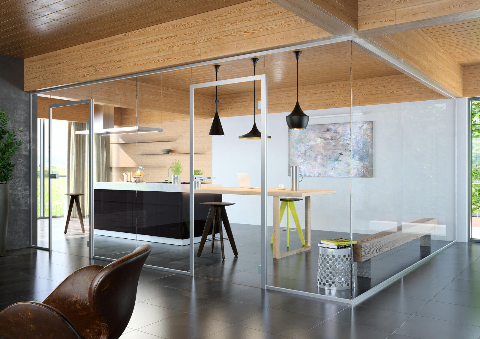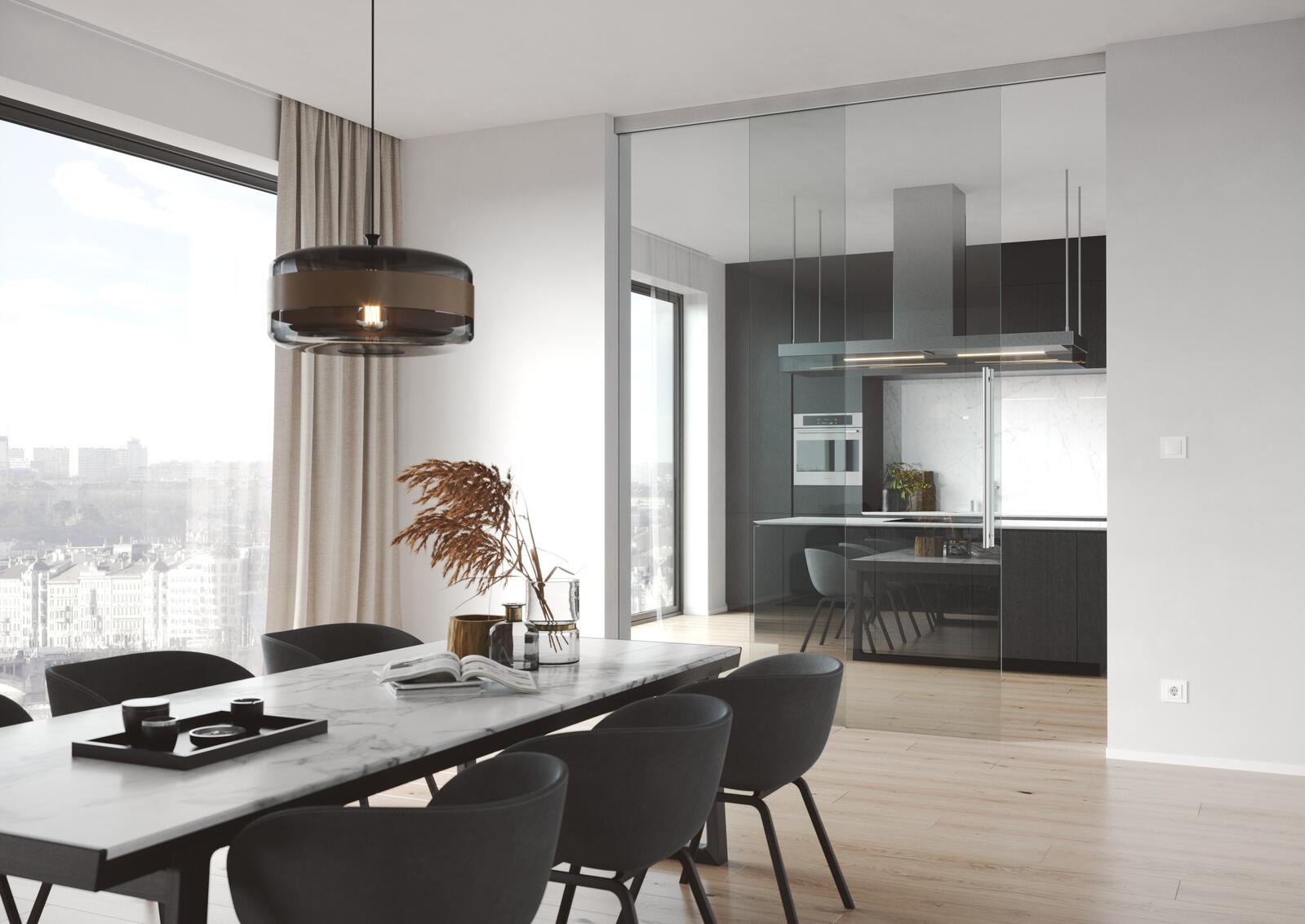 Celosklenené steny nie sú len dizajnovým prvkom interiéru. Zvlášť vo veľkých priestoroch môže vzniknúť požiadavka na čiastočné oddelenie niektorej zóny.