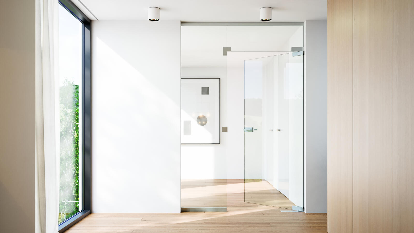 Zostava Epsilon sa skladá z hornej kotviacej lišty, horného dverného pántu s protikusom, rohovej spojky, kľučky Hero s protikusom Cube, dverného zatvárača a dolného U-profilu. Miesto kľučky je možné použiť držadlo.