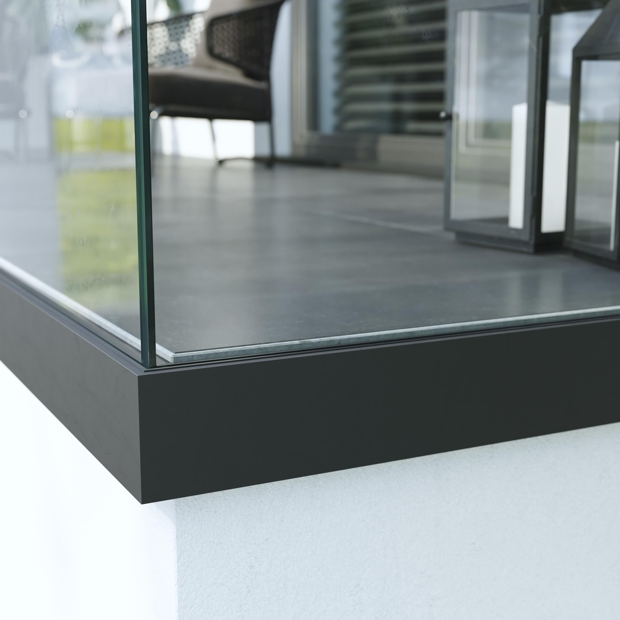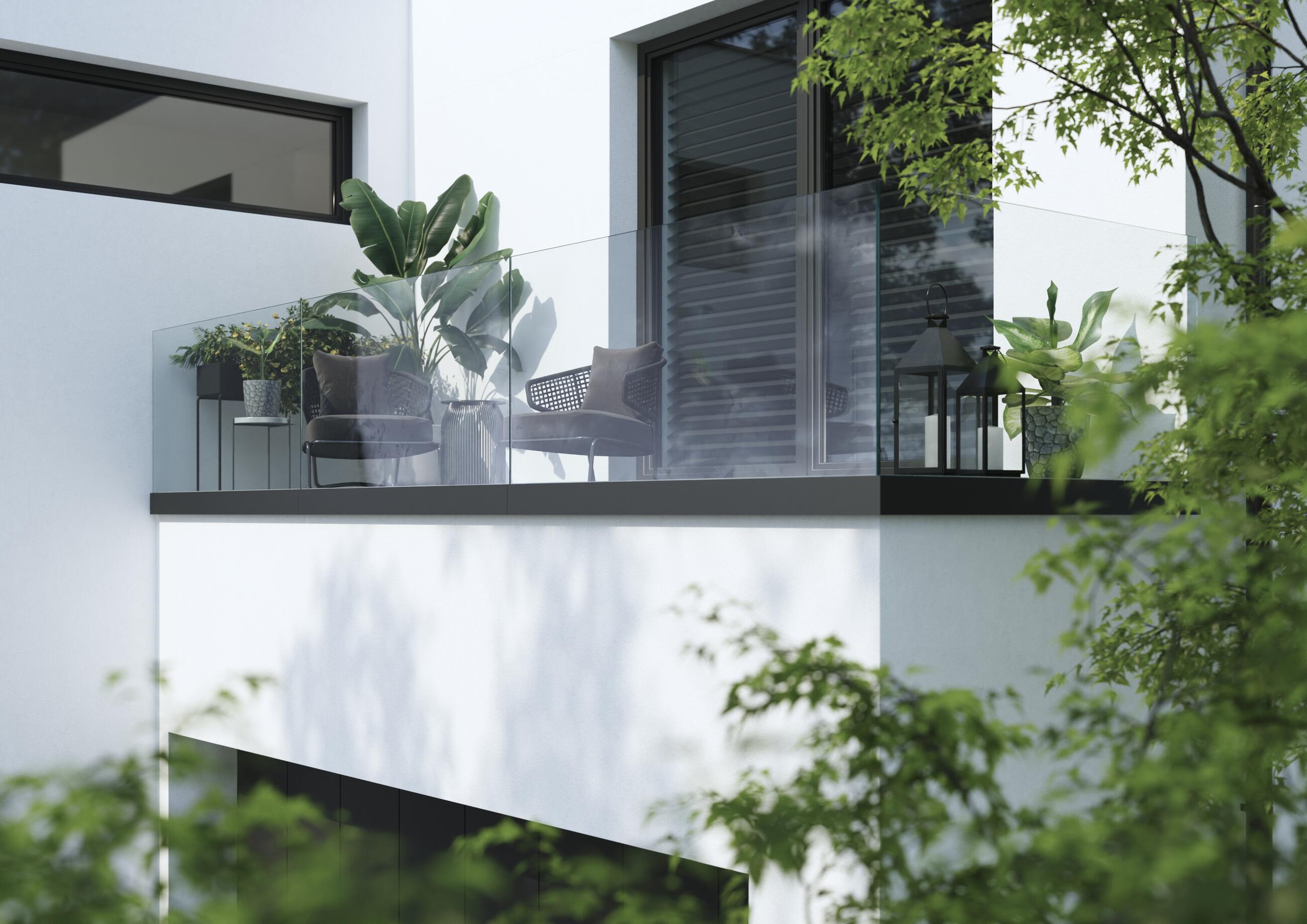 Interiérové a exteriérové zábradlie CONSUL má základnú konštrukciu tvorenú hliníkovou lištou a lepenými kalenými sklami. Je kotvené z bočnej strany, otvory kotvenia sú následne zakryté krytkami alebo plechovým krytom.