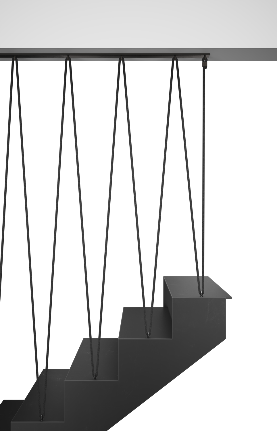 Montáž sa vykonáva podľa veľkosti a tvaru schodiska, a to buď už v stavebnej pripravenosti, alebo v hotovom interiéri. Povrchová úprava je najčastejšie prášková farba – odtiene RAL. V tomto prípade je jednoduché zábradlie vytvorené „prepletením“ horolezeckého lana.