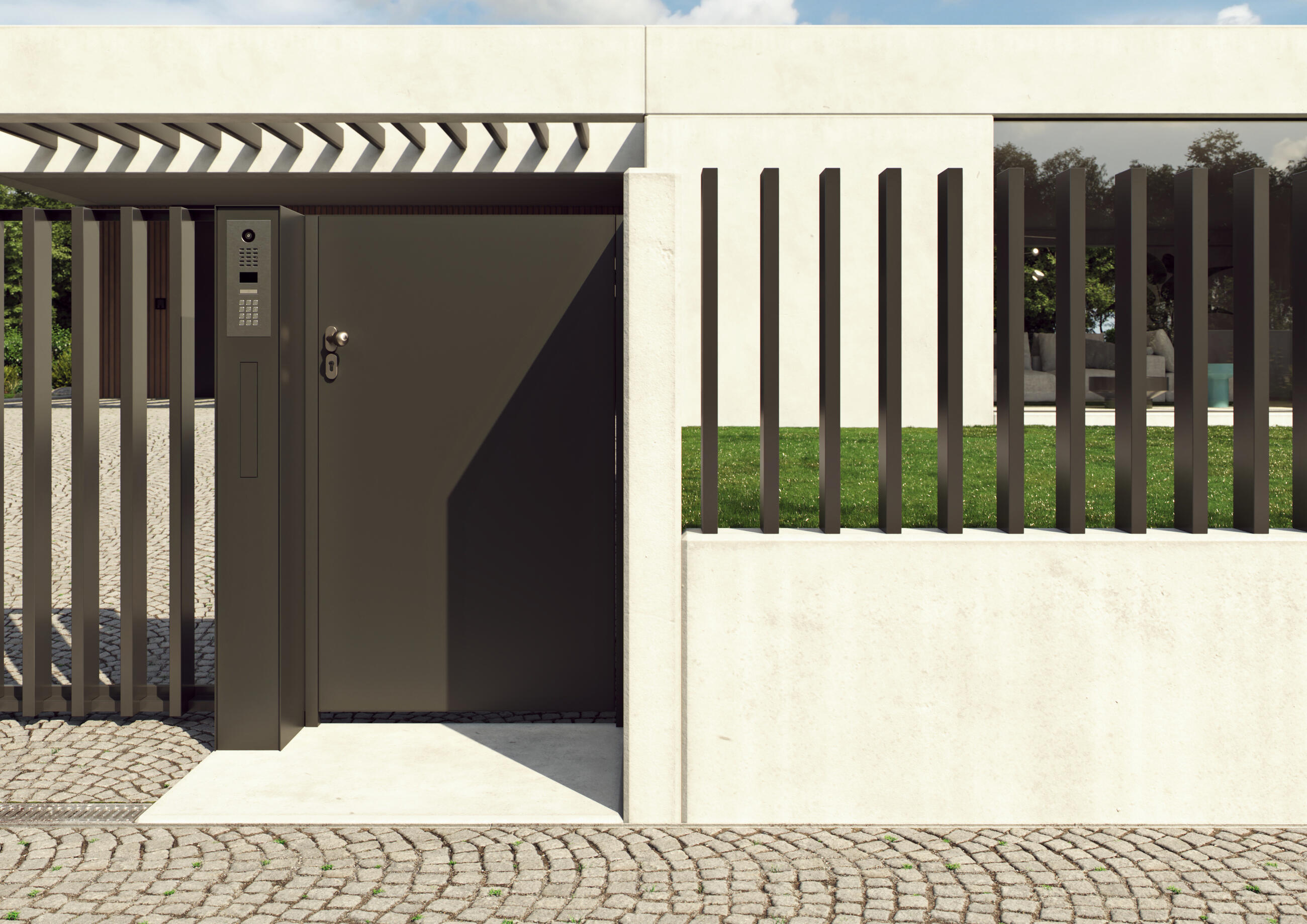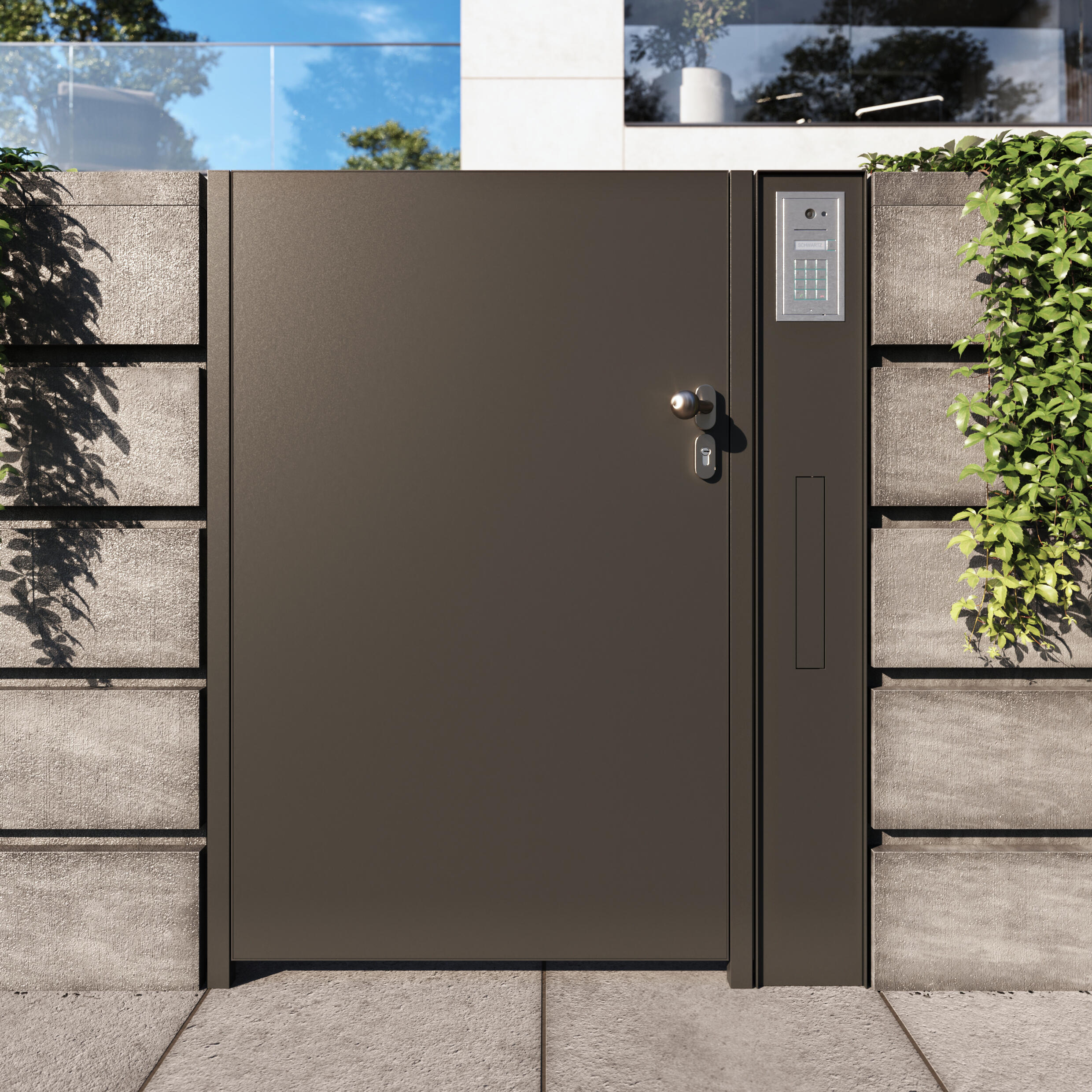 Dizajn je rovnaký ako pri ostatných moduloch radu LIBERTY, takže plot ako celok vyzerá kompaktne a upravene. Bránka je k dispozícii v rôznych rozmeroch a s rôznymi typmi zámkov a kovania. Musí byť ukotvený do pevnej steny/gabionu. Pre tento variant môžeme použiť aj prvok Label.