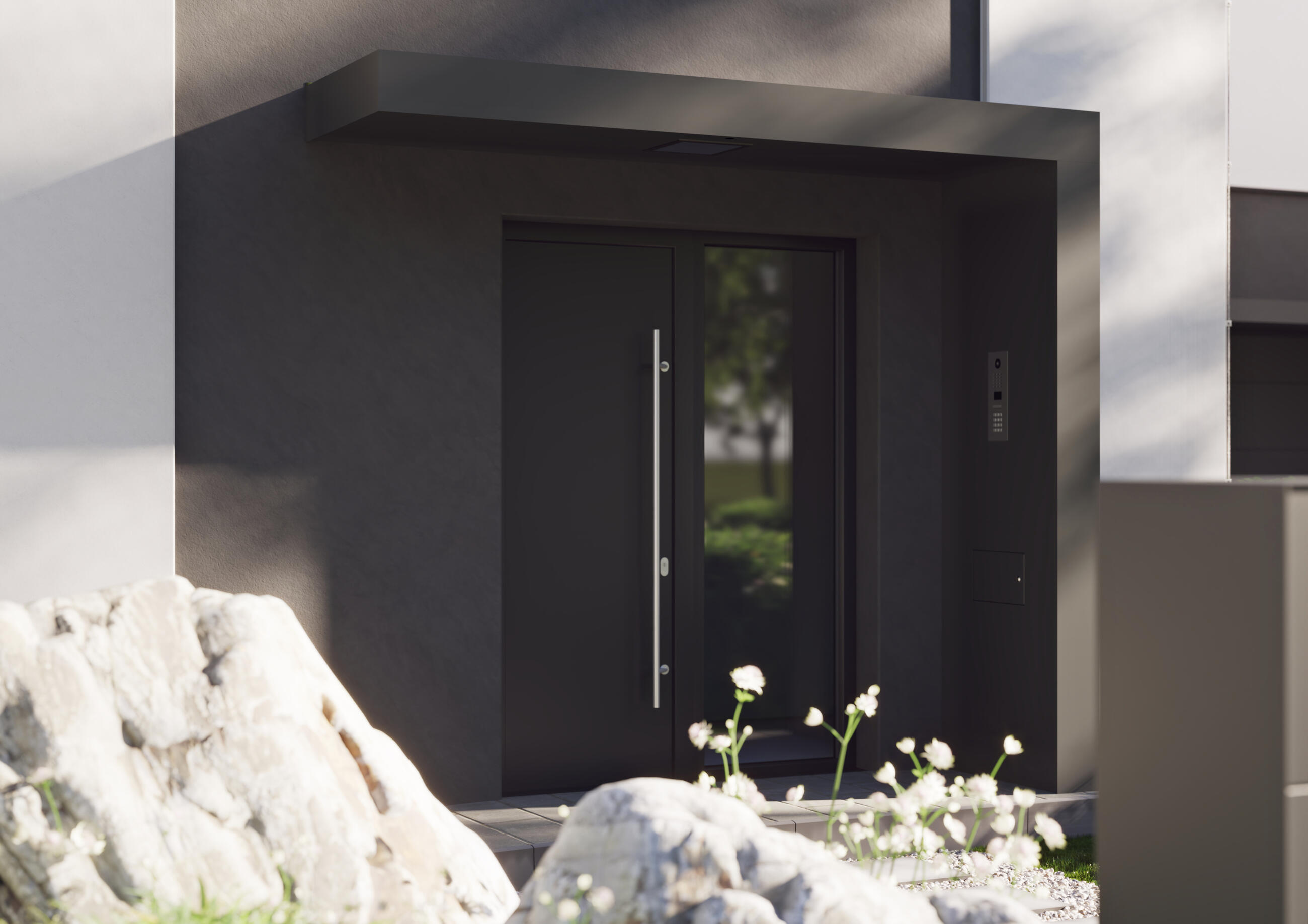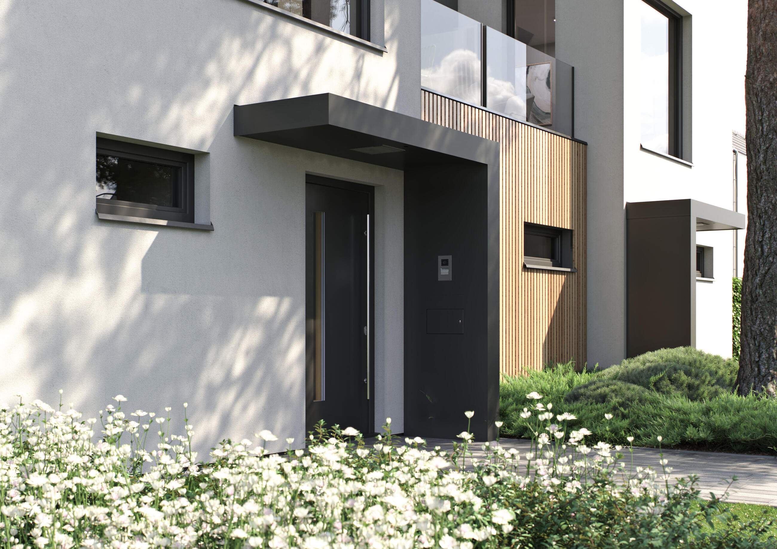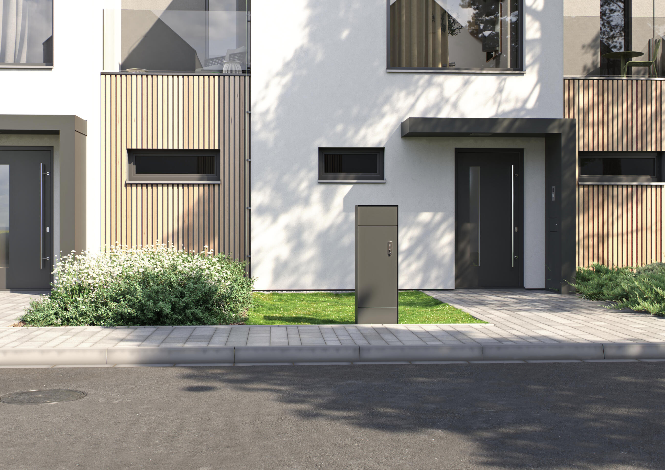 Modul obsahujúci rôzne komponenty – popisné číslo, poštovú schránku, striešku, svetlo na snímač a prípravu na zvonček. Vytvorí sa tak miesto chránené pred vetrom, dažďom a slnkom. Modul môže mať rôznu šírku, hĺbku, orientáciu a v závislosti od počtu rodín v dome je možné zvoliť jeden alebo dva systémy. Pre tento variant môžeme použiť aj prvok Label.