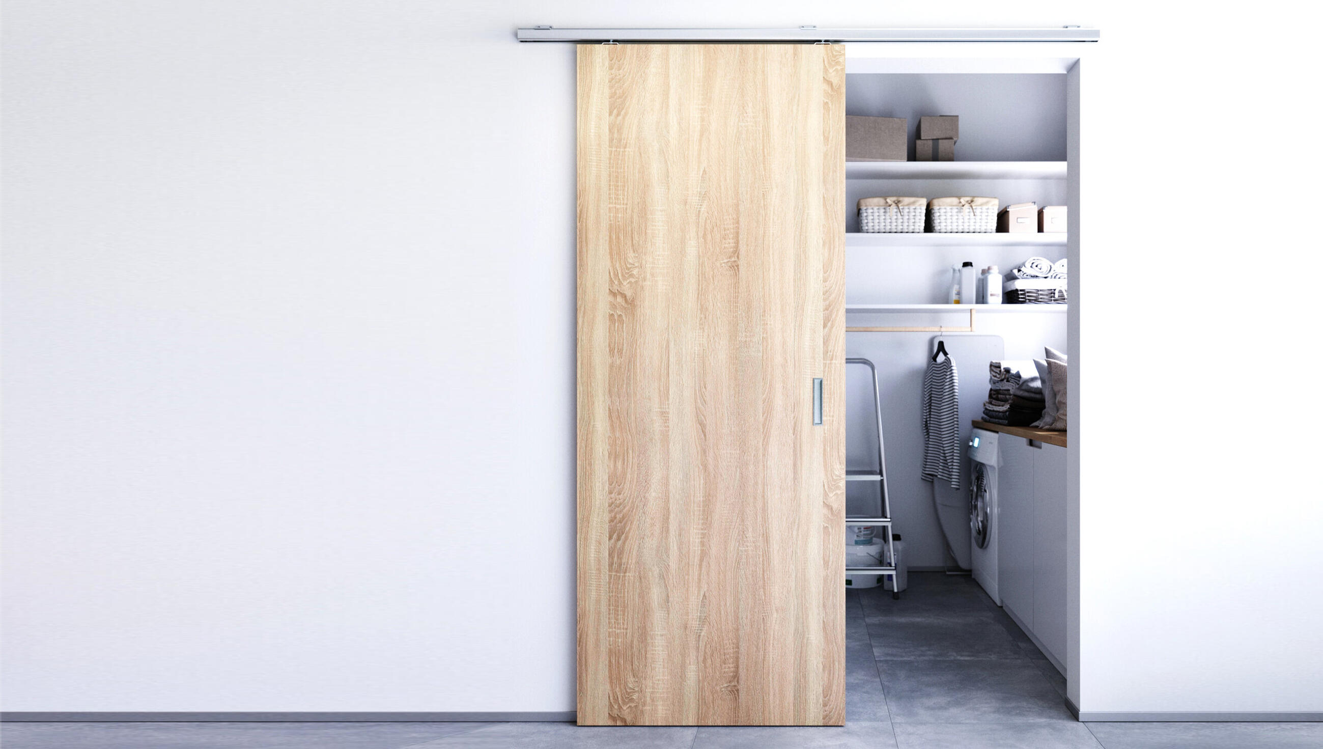 Hliníková profilová koľajnica so zvoleným kotvením (stena, strop). Súčasťou sú úchyty na drevo, na sklo je možné doobjednať tzv. úchyty vetro 22. Tiché dorazy nie sú súčasťou.