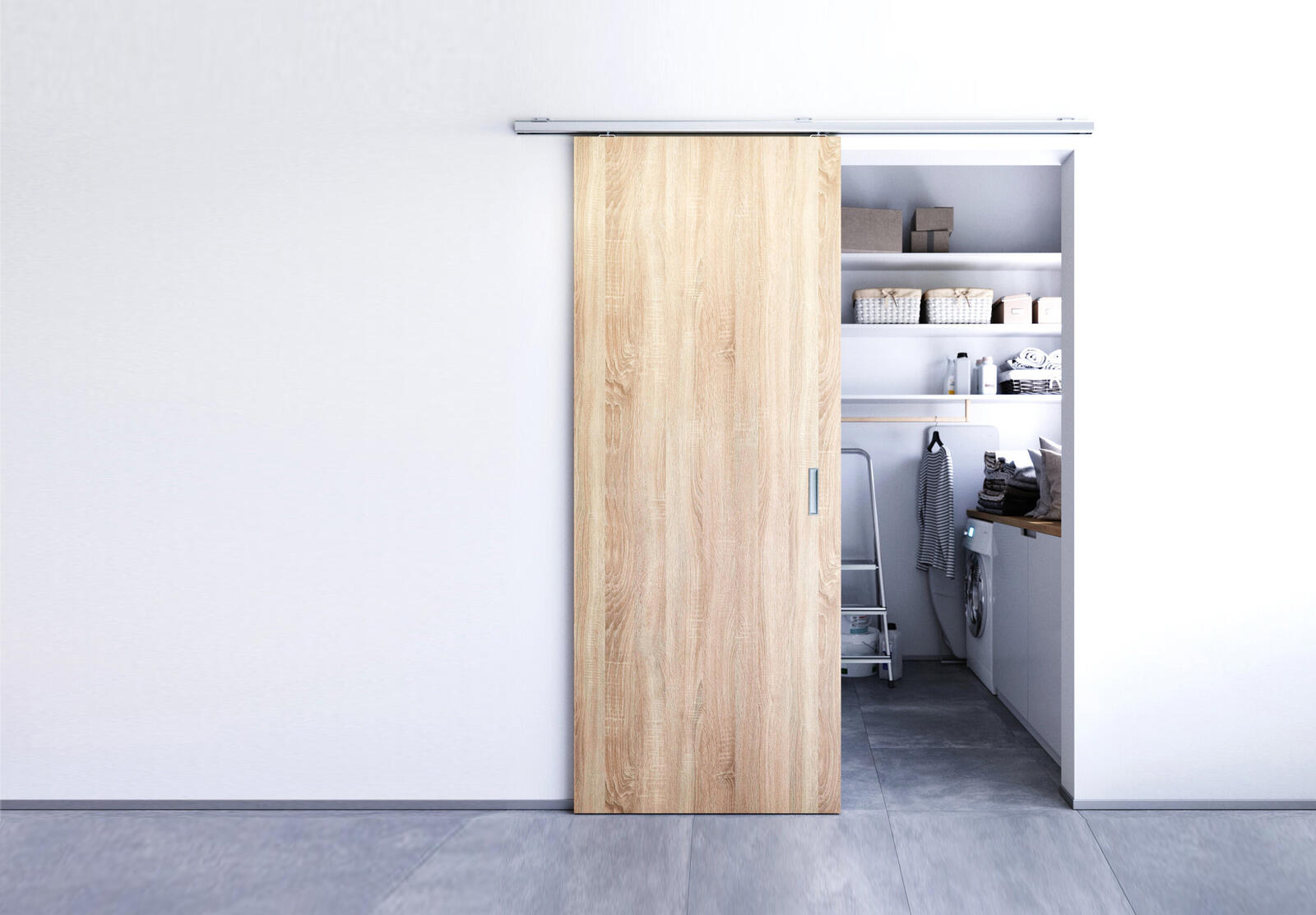 Hliníková profilová koľajnica so zvoleným kotvením (stena, strop). Súčasťou sú úchyty na drevo, na sklo je možné doobjednať tzv. úchyty vetro 22. Tiché dorazy nie sú súčasťou.