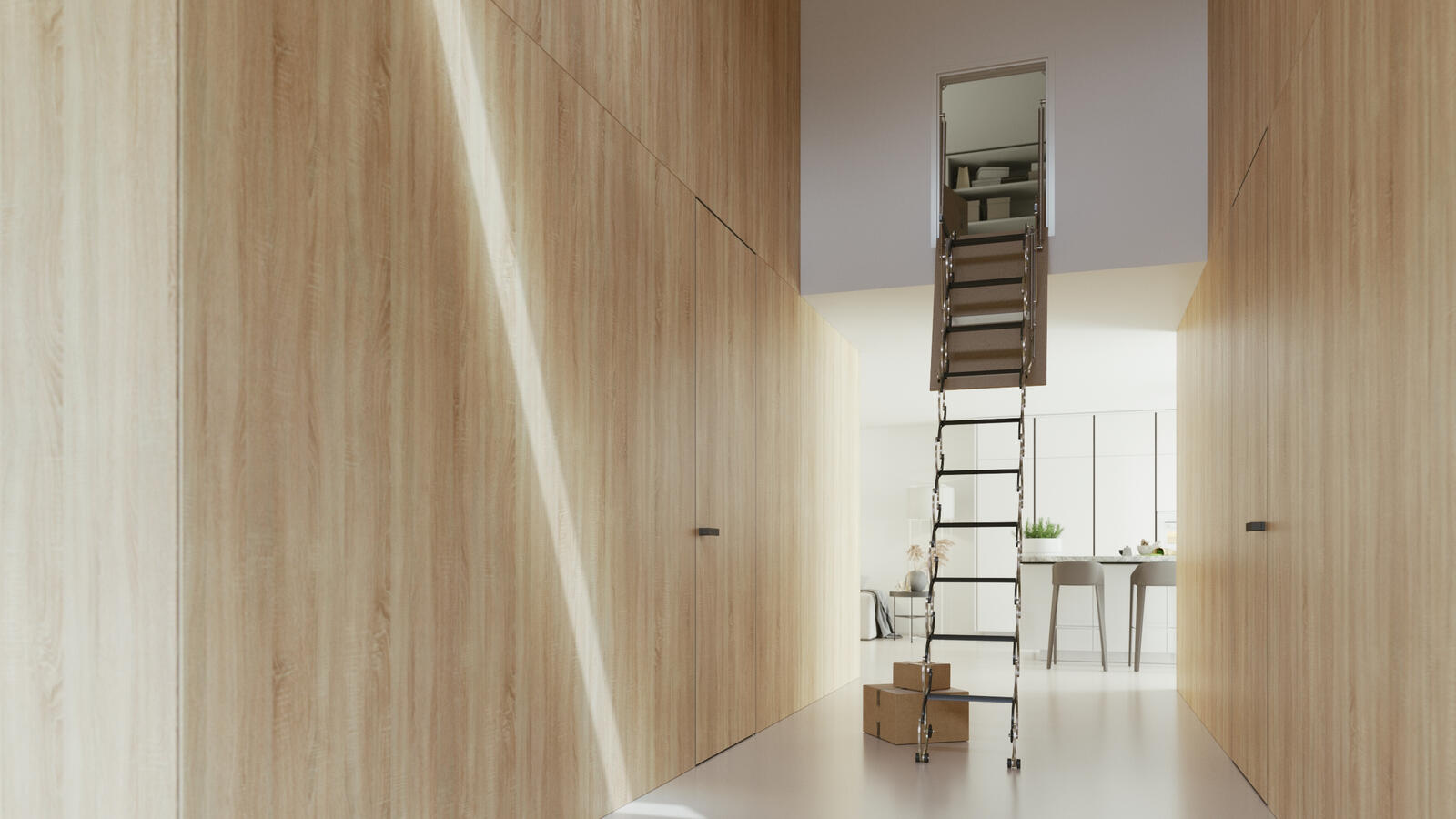 Sťahovacie pôjdové schody Verticale sú rovnako ako schody Lusso základným typom nami vyrábaných sťahovacích pôjdových schodov. Slúžia na ľahký prístup do pôjdových priestorov v prípade, že potrebujete mať priechod miesto stropu v stene. Rám (prechod) schodov je možné tiež vyrobiť v atypických rozmeroch.