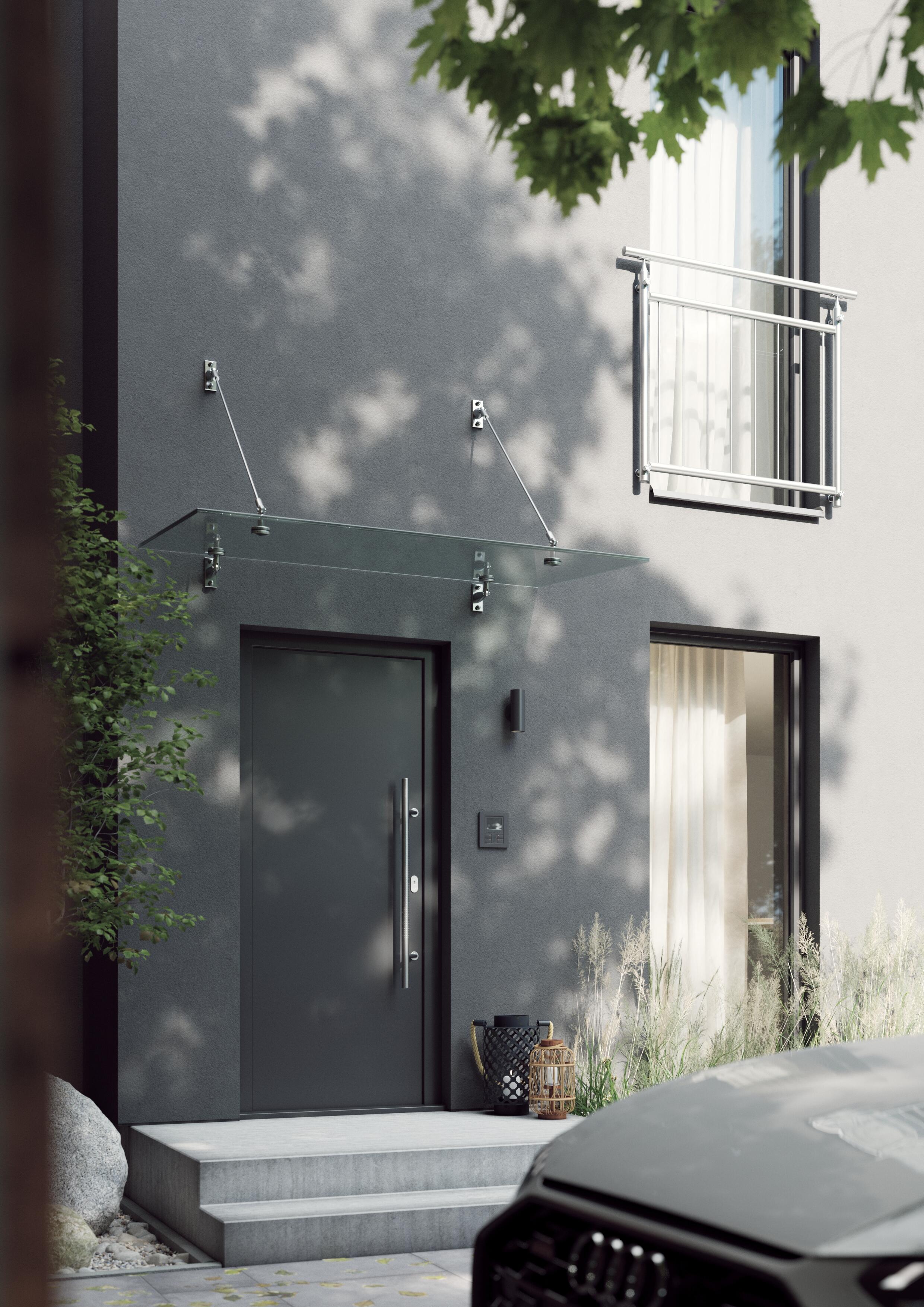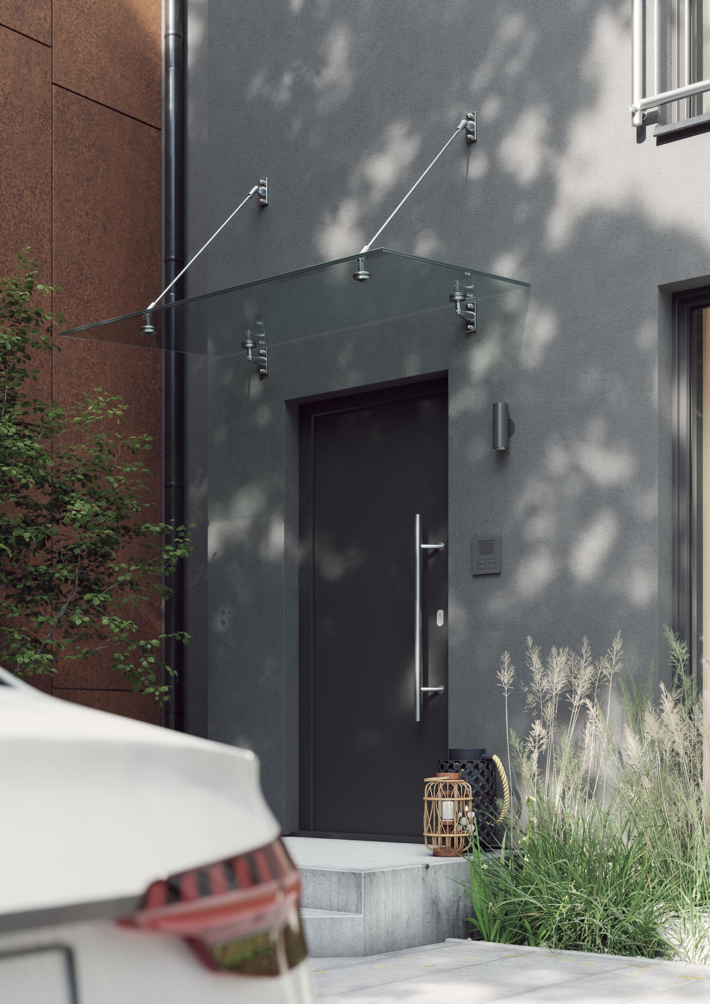 Sklenená vchodová strieška Rain je vyrobená zo špeciálneho kaleného skla Connex. Skladá sa zo sklenenej dosky, antikorových tyčí, kotviacich nastaviteľných kĺbov, ktoré udržujú konkrétny bezpečný sklon striešky. Strieška spĺňa normu pre nosnosť snehu podľa danej lokality v Českej republike (s dvoma, poprípade tromi ťahadlami, vždy v šírke skla 1 m, 1,25 m a 1,5 m). Zákazník má možnosť výberu z niekoľkých variantov skla: