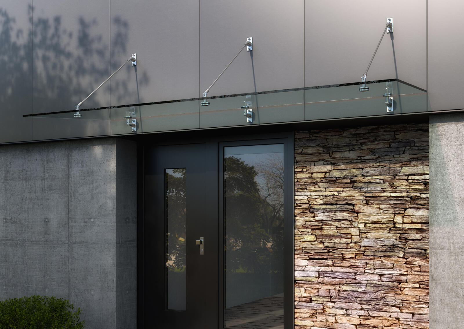 Sklenená vchodová strieška Rain je vyrobená zo špeciálneho kaleného skla Connex. Skladá sa zo sklenenej dosky, antikorových tyčí, kotviacich nastaviteľných kĺbov, ktoré udržujú konkrétny bezpečný sklon striešky. Strieška spĺňa normu pre nosnosť snehu podľa danej lokality v Českej republike (s dvoma, poprípade tromi ťahadlami, vždy v šírke skla 1 m, 1,25 m a 1,5 m). Zákazník má možnosť výberu z niekoľkých variantov skla: