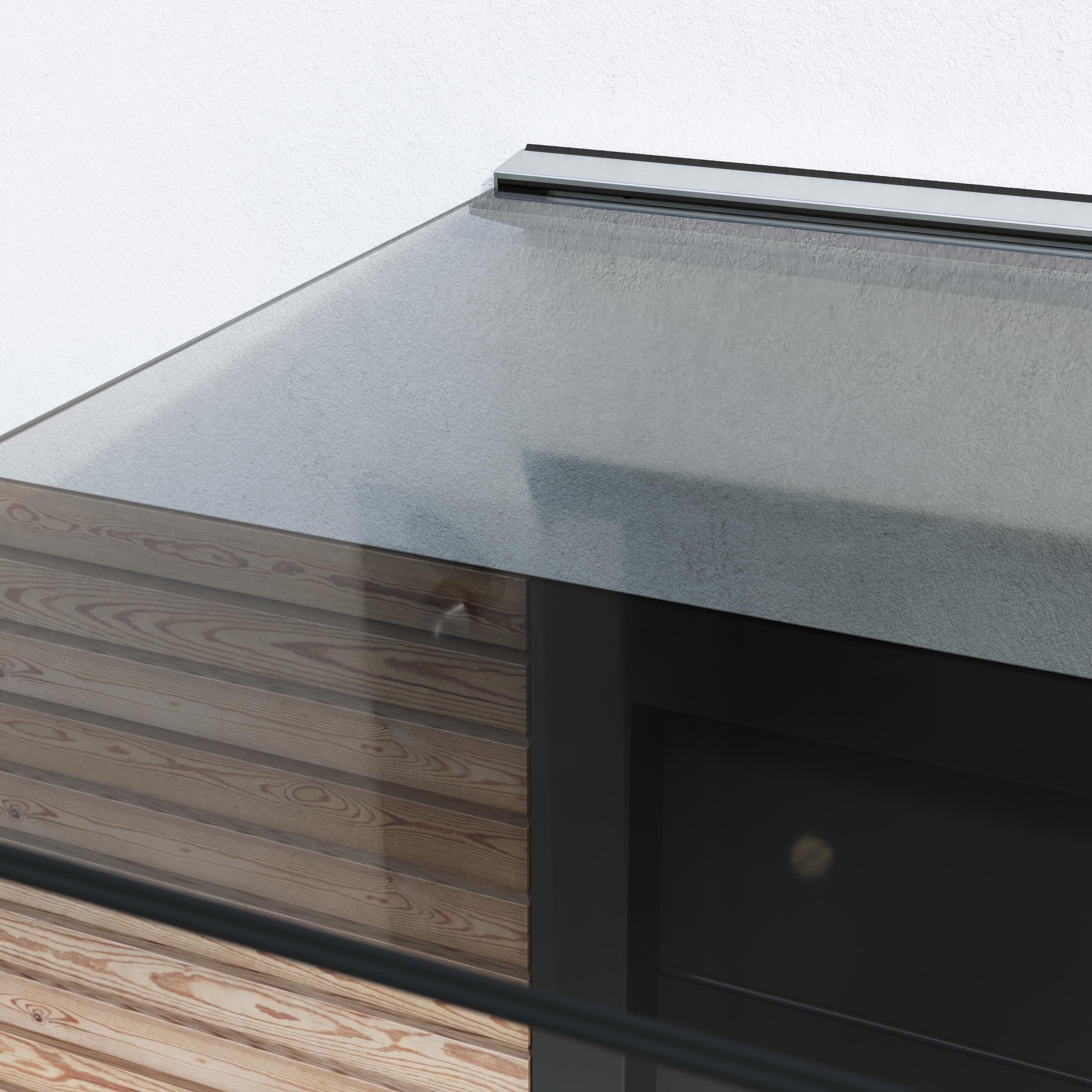 Hliníková lišta je ukotvená na stenu, na pevná podklad. Sklon skla striešky je pozitívny, teda smerom od fasády domu. Maximálna dĺžka lišty je 3 000 mm a je vyhotovená v striebornom eloxe. Sklo môže byť vyrobené z číreho, mliečneho alebo farebného skla Planibelu, prípadne s motívom (GRAFOSKLO). Hliníková lišta sa dodáva v pôvodnom eloxovanom hliníkovom vyhotovení alebo lakovaná vo farbách podľa želania zákazníka. Vzorkovnica na stiahnutie – TU.