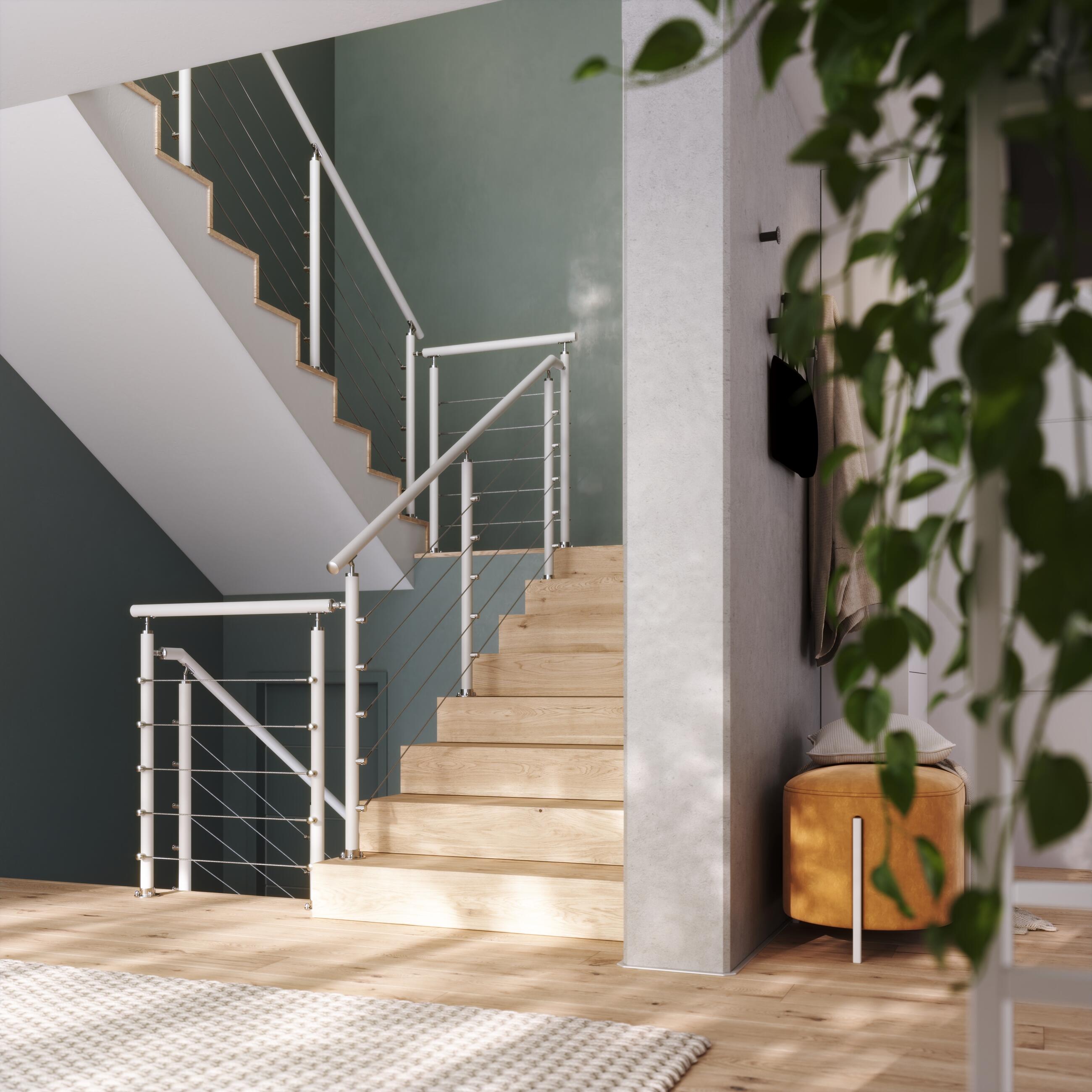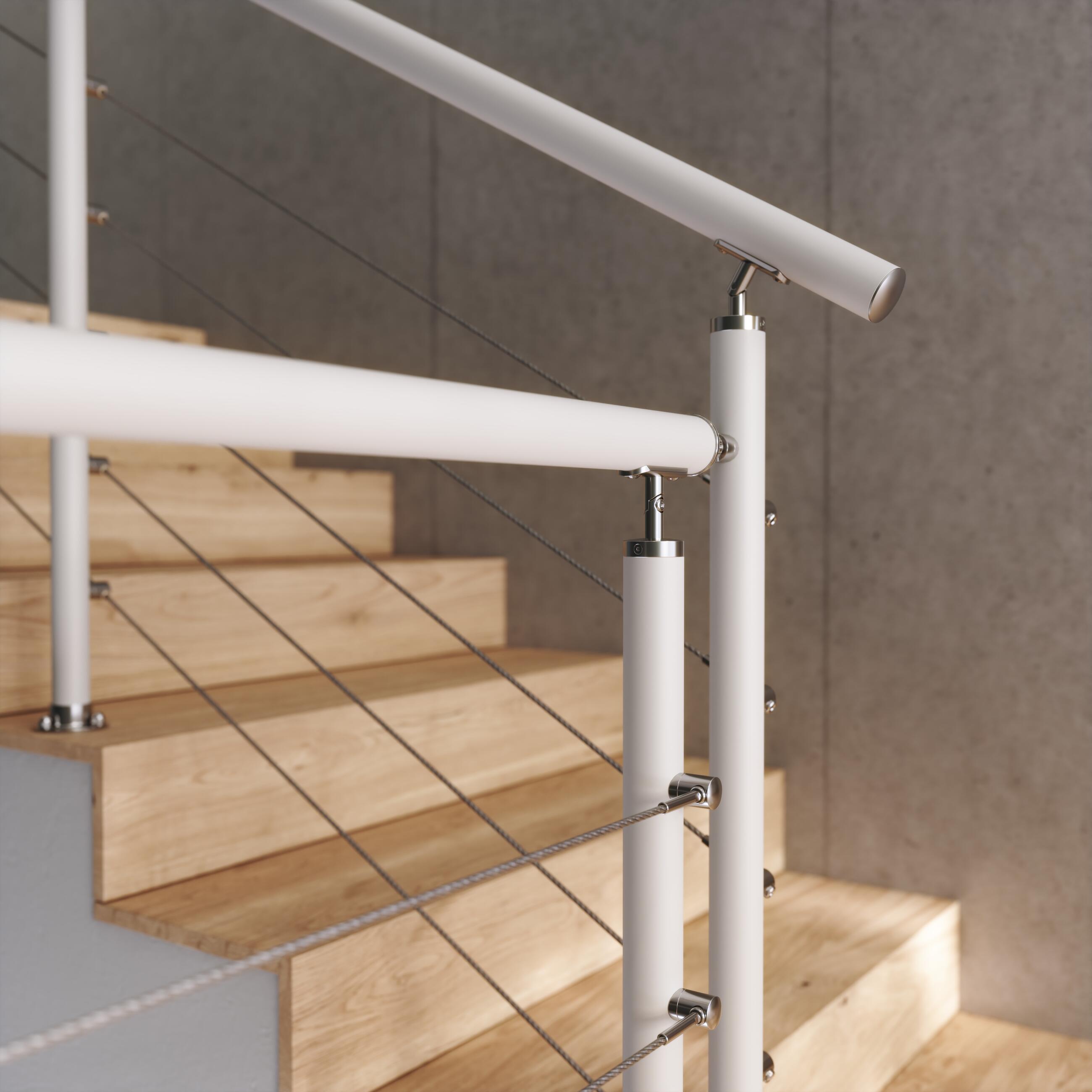 Interiérové zábradlie STRING má základnú konštrukciu pozostávajúcu zo stĺpikov, vodorovnej lankovej výplne a držadla z nehrdzavejúcej ocele, variabilne dreveného. Antikorové pätky sa kotvia zhora alebo zboku schodiskových nášľapov. Stĺpiky a držadlo modelu STRING vyrábame aj vo farebných odtieňoch podľa požiadaviek zákazníka, lanká zostávajú z nehrdzavejúcej ocele.